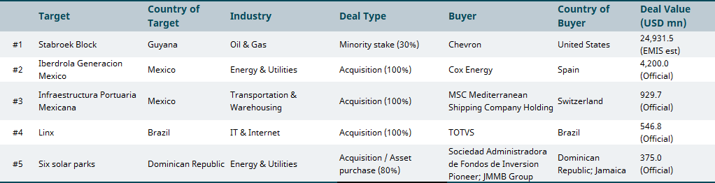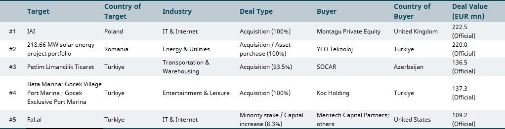 August 2025 top M&A deals in emerging markets by region