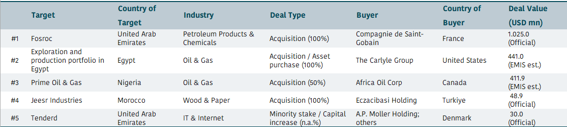 June 2024 top M&A deals in emerging markets by region