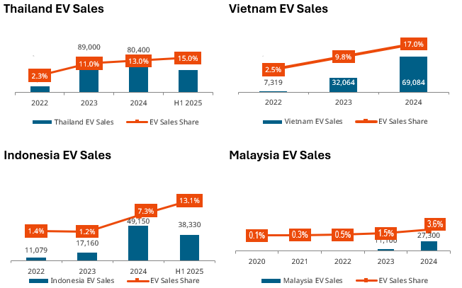 At the same time, EV adoption is accelerating across the region. Thailand has emerged as ASEAN’s largest EV market, Indonesia and Vietnam are posting some of the fastest growth rates globally, and investment from Japanese, Chinese and regional automakers is reshaping production footprints.