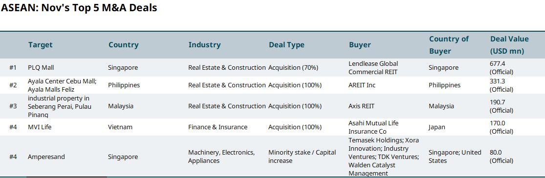 Singapore-based Lendlease Global Commercial REIT (LREIT) acquired a 70% stake in PLQ Mall at an agreed property value of SGD 885mn (USD 677.4mn) from the Abu Dhabi Investment Authority. The transaction will enhance LREIT’s Singapore portfolio by adding a prime suburban retail asset, strengthening income stability, and diversifying tenant exposure. PLQ Mall, located within the Paya Lebar Quarter and opened in 2019, features over 200 outlets and benefits from high footfall at the Paya Lebar MRT interchange.