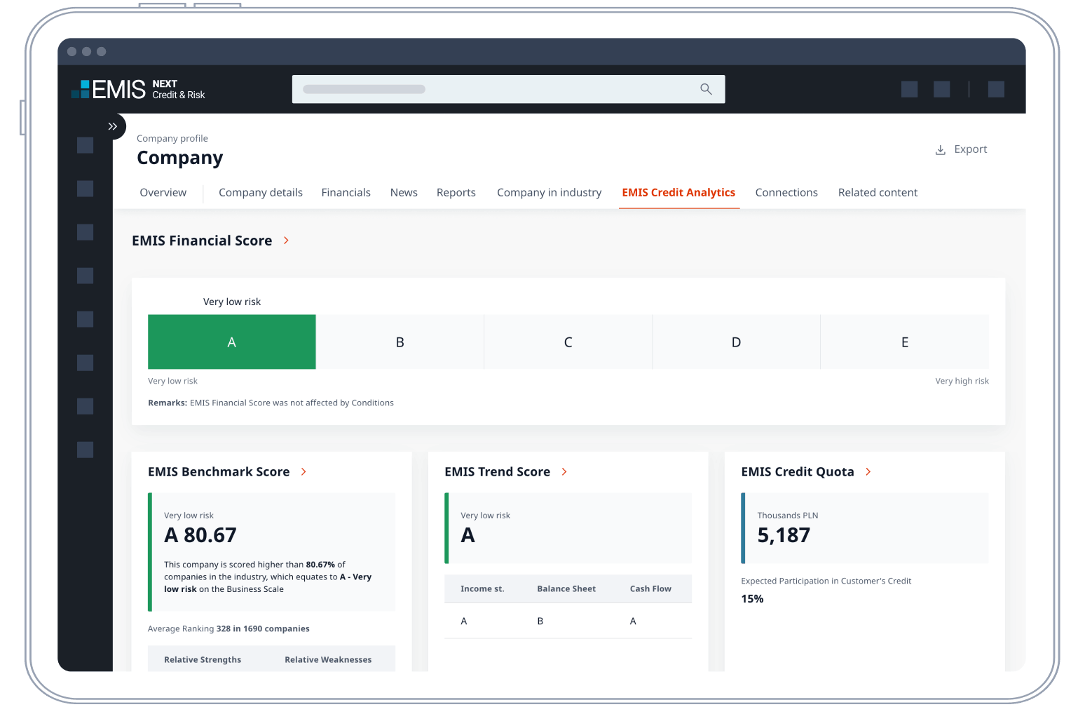 Deep and long-term company financial data and news to analyse creditworthiness and risk.