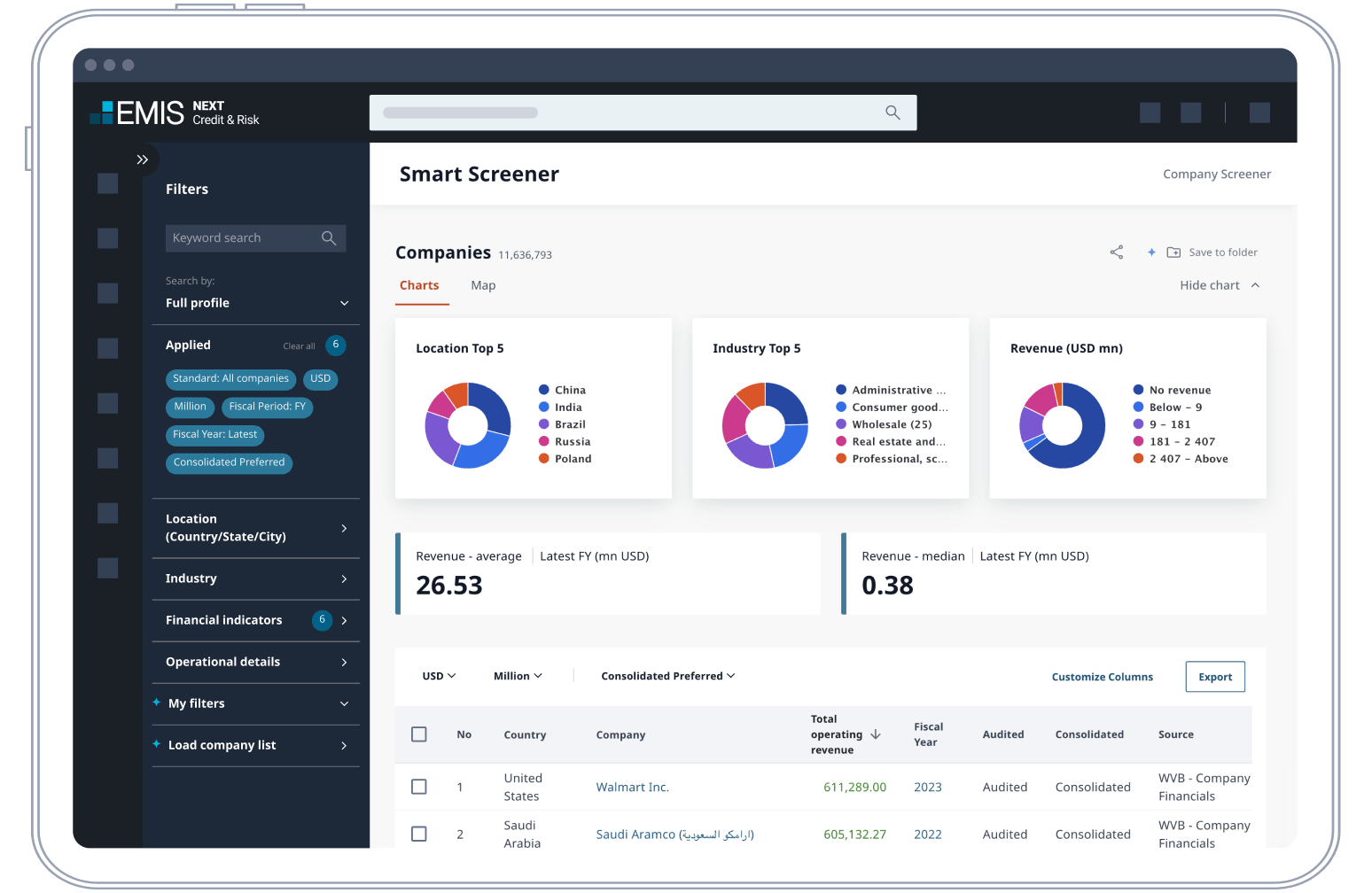Industry profiles, statistics and benchmarks to understand the risk within a particular sector.