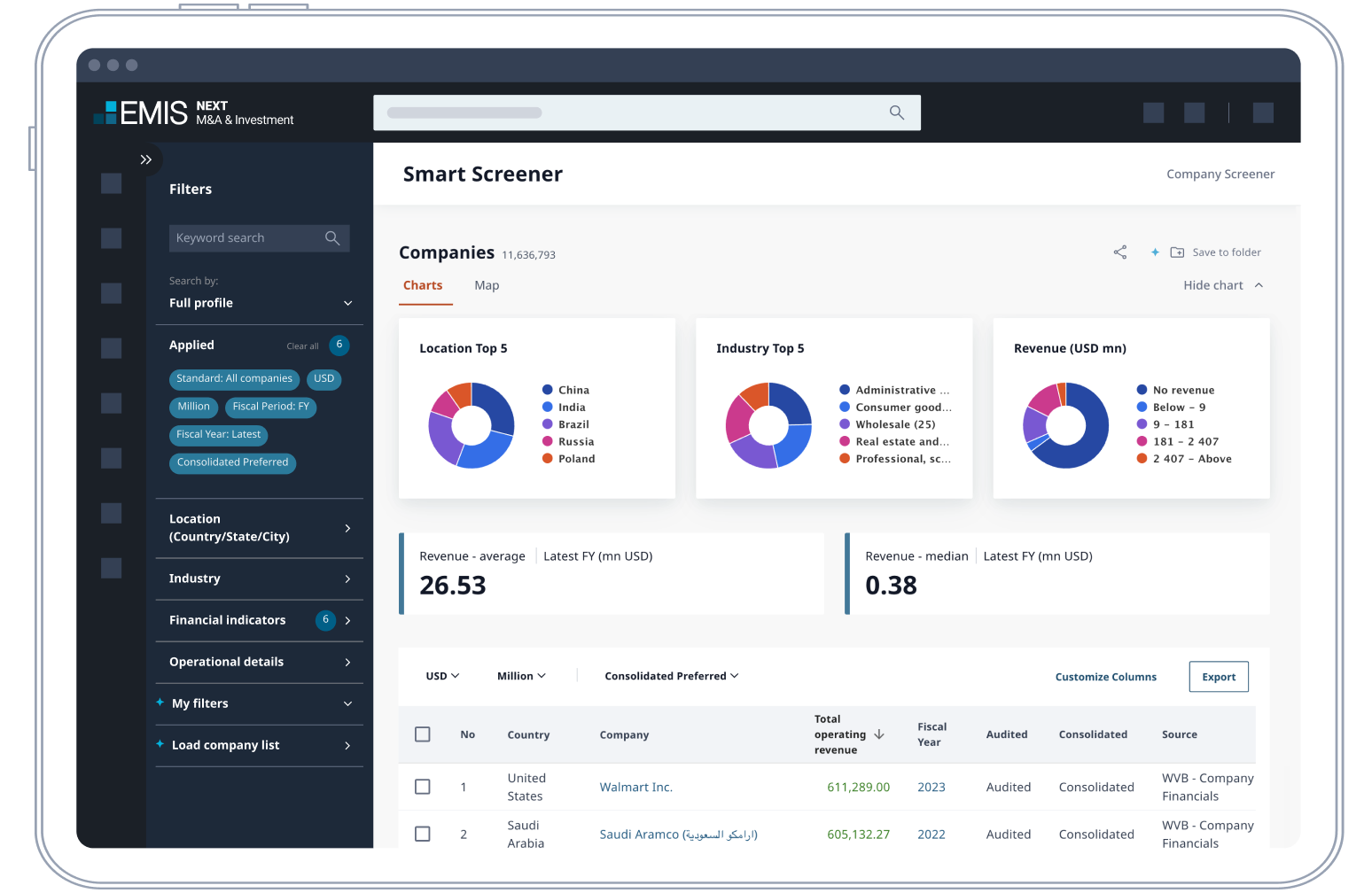 EMIS helps M&A and Investment professionals to uncover and screen business opportunities in ASEAN and other world's fastest growing markets by providing detailed and reliable industry, company and deals intelligence through a single platform aided by analytical tools.